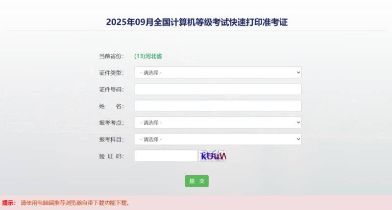 打印入口:中国教育考试网(https://ncre.neea.edu.cn/)