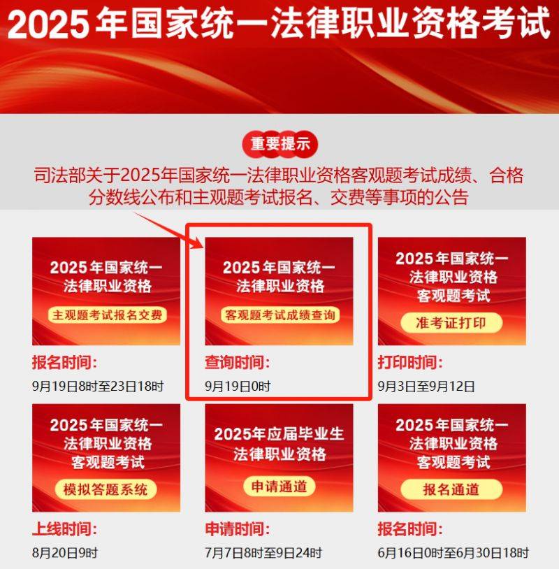 2025年9月19日0时,通过司法部官网、司法部微信公众号和中国普法微信公众号查询本人成绩,登录司法部官网打印成绩通知单