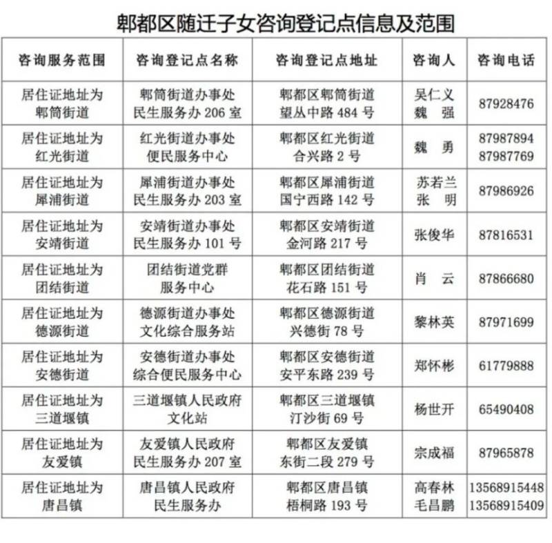 符合上述两类条件之一的申请人,其随迁子女由郫都区教育局统筹安排入学。