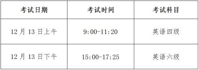 11月22日英语四级口试,11月23日英语六级口试,场次安排如下: