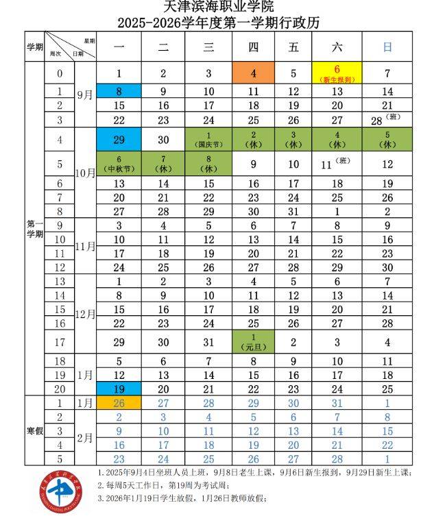 1.2025年9月4日坐班人员上班,9月8日老生上课,9月6日新生报到,9月29日新生上课;