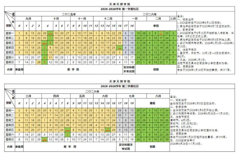 2.实训和期末考试周:2026年6月29日-7月19日;