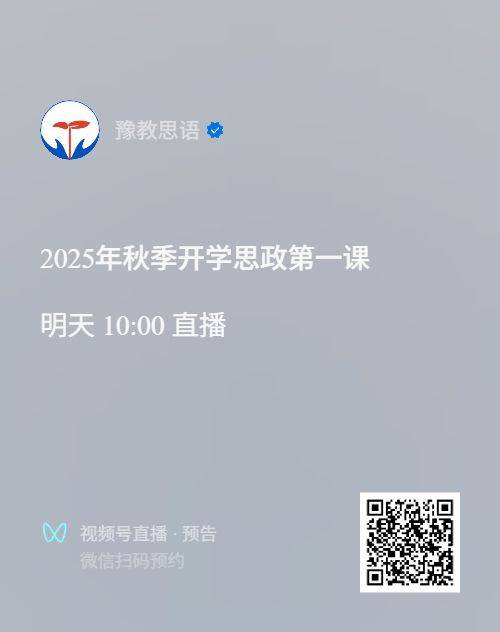 关注“豫教思语”视频号,点击右上角“预约”,即可观看。