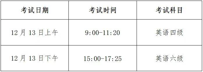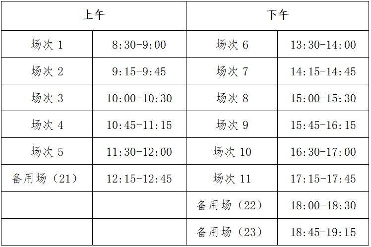 11月22日英语四级口试,11月23日英语六级口试,场次安排如下: