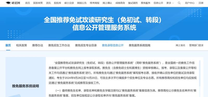 教育部“推免服务系统”(网址:http://yz.chsi.com.cn/tm)