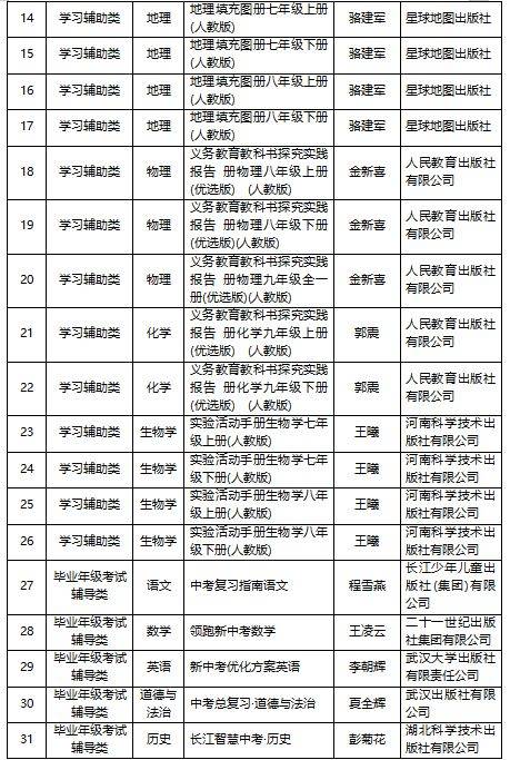 根据《教育部关于印发〈中小学教材选用管理办法〉的通知》(教材〔2023〕1号)《省教育厅关于印发〈湖北省中小学教材选用管理实施细则〉的通知》(鄂教基〔2023〕7号)《省教育厅省发改委省新闻出版局关于印发〈湖北省义务教育教辅材料推荐目录〉的通知》(鄂教基〔2025〕3号)》等文件精神,襄阳市中小学教材选用委员会组织开展了义务教育教辅材料选用,现将结果予以公示。