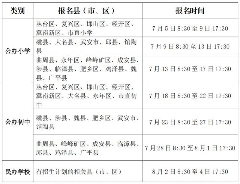 6.民办学校招生报名。拟参加民办学校报名的学生,需按照以上要求先行参加公办学校报名。在所有学生完成以上报名基础上,如符合条件且有意愿就读民办义务教育学校的,在规定的民办学校报名时间内,通过登录邯郸市义务教育阶段学校招生服务平台(https://zs.hdjy.net.cn),选择一所民办学校进行报名。