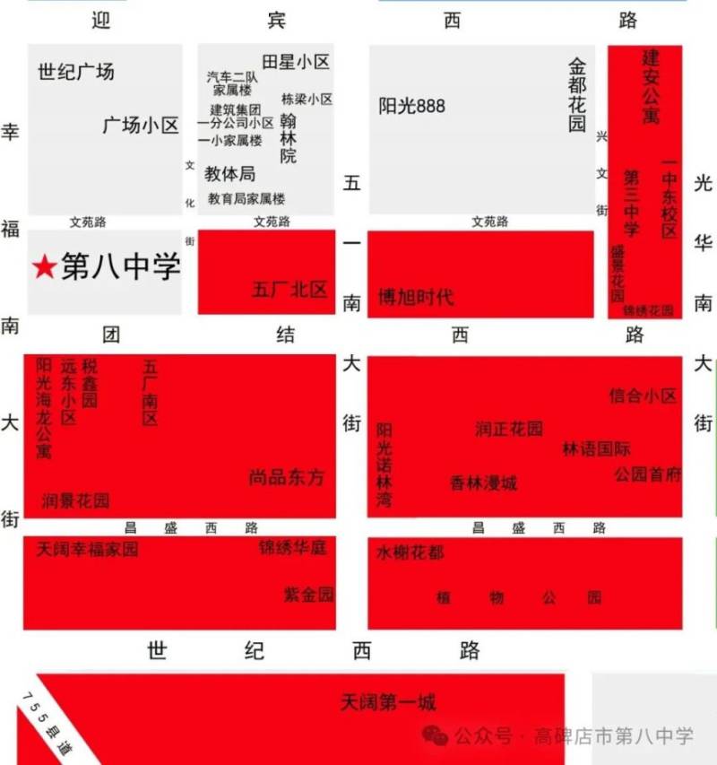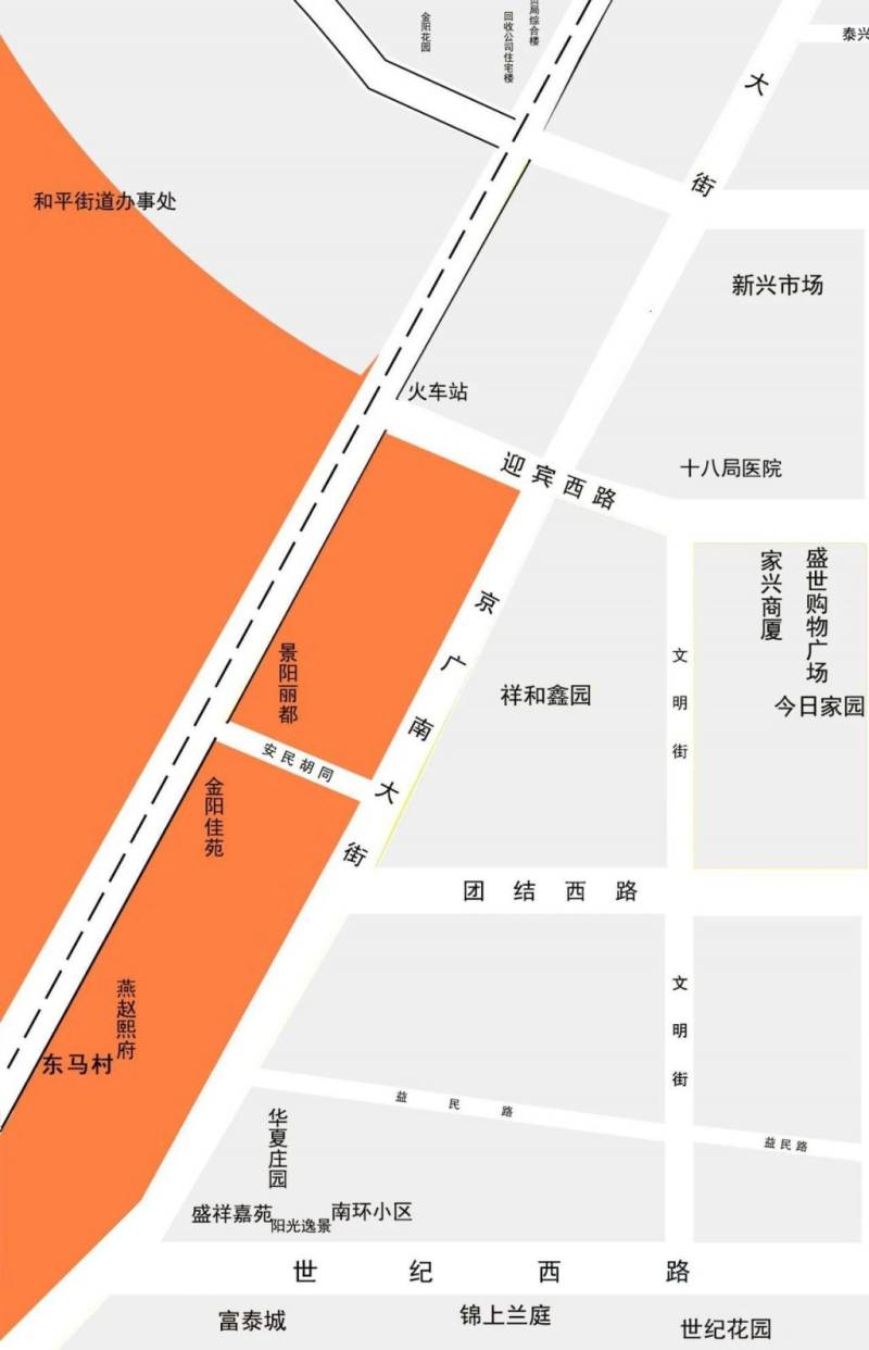 1.文化街以东、迎宾路以南、兴文街以西、文苑路以北片区;幸福南大街以东、迎宾路以南、文化街以西、团结西路以北片区;京广南大街以东、迎宾路以南、幸福南大街以西片区。