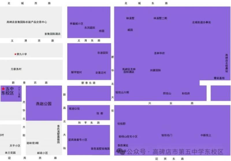 1.迎宾西路以南、京广南大街以西片区(社区)及和平街道东马村、西马村、南虎村、北虎村、三丈辛庄村、三丈铺村、三丈村、南方中村、北方中村、栗各庄村的学生。