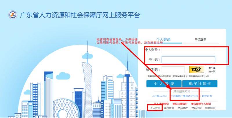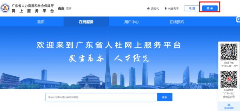 1.登录广东省人力资源和社会保障厅网上服务平台