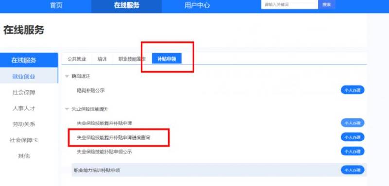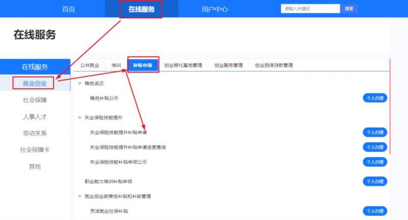 3.在线服务-补贴申领-失业保险技能提升补贴,进行补贴申请