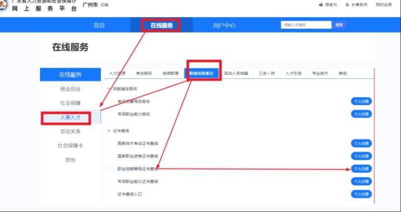 网址:https://ggfw.hrss.gd.gov.cn/gdggfw/index