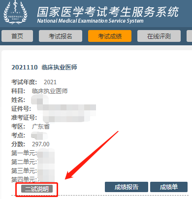 2. 能看到成绩后,如果考生符合参加二试规则,就会看到”二试说明“按钮。