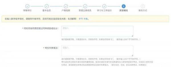 3、填写考生信息共包括七个部分:学籍学历、基本信息、户籍档案、家庭主要成员、学习与工作经历、奖惩情况、联系方式。下面依次进行介绍: