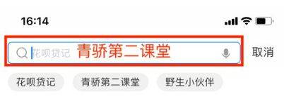 第一步:手机打开支付宝APP,首页搜索关键词“青骄第二课堂”