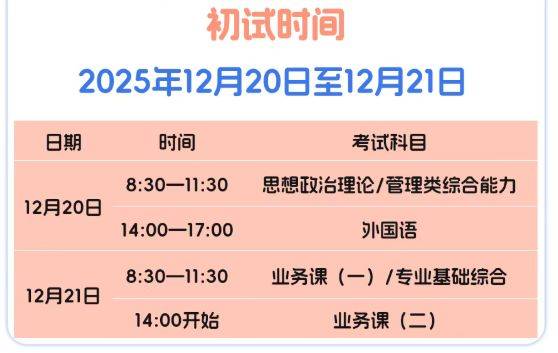 2026年全国硕士研究生招生初试时间为:2025年12月20日至21日
