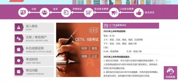 报名/准考证打印/成绩查询官网:2025年全国大学英语四、六级考试笔试(以下简称CET)及口试(以下简称CET-SET)中国教育考试网