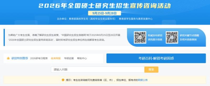 2026年全国硕士研究生招生宣传咨询活动时间+入口