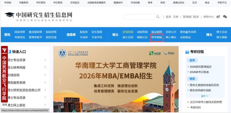 报名入口:中国研究生招生信息网(https://yz.chsi.com.cn)