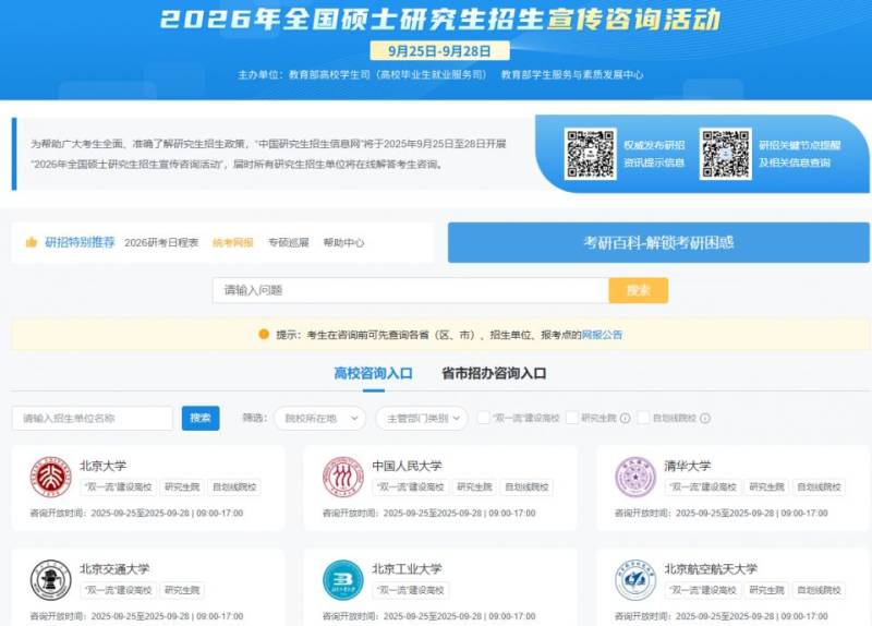 咨询活动:2025年9月25日至28日,在【中国研究生招生信息网】