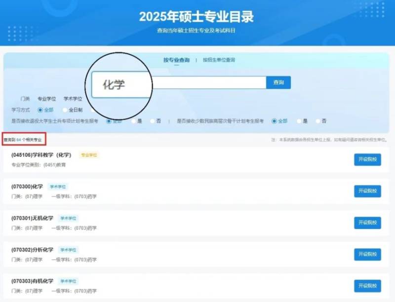 可以直接从列表中选择目标专业进行查询
