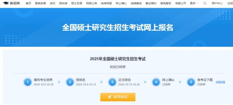 报名分为两个主要流程:填写考生信息+填写报考信息(考生信息可以在预报名前一周填写好,报考信息则是在预报名的时候才可以填写)