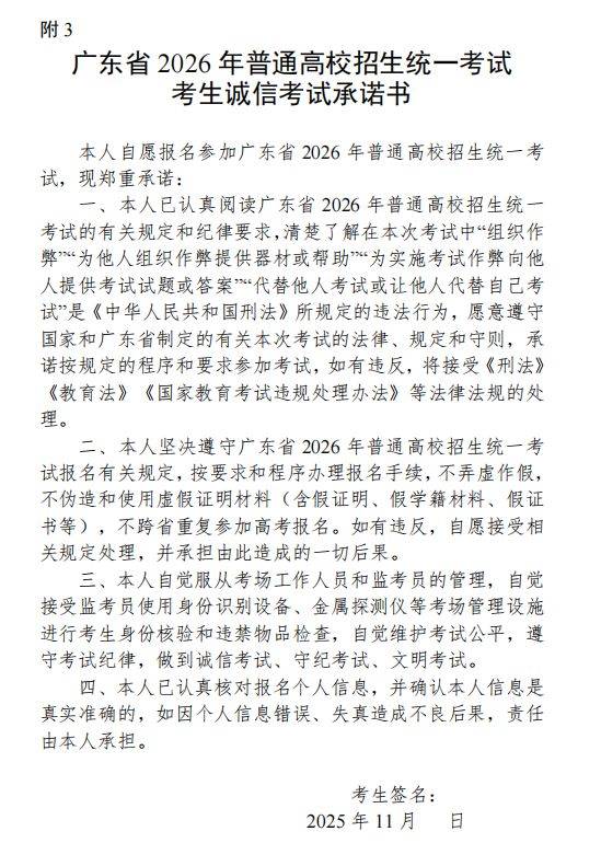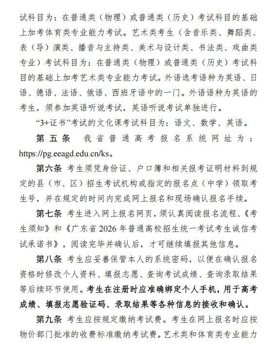 》》》推荐阅读:关于做好广东省2026年普通高校招生统一考试报名工作的通知
