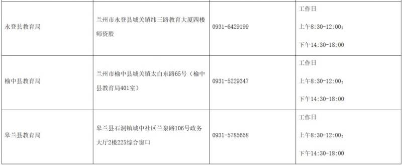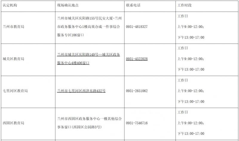 2.兰州市各认定机构现场确认地点及联系方式