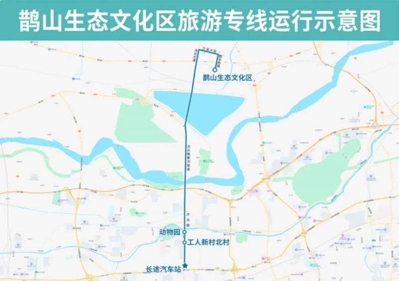 鹊山生态文化区旅游专线由长途汽车站开往鹊山生态文化区,沿途设置济南长途汽车总站(站内)、长途汽车站(济泺路地铁站B口)、工人新村北村、动物园、鹊山生态文化区站点,票价10元。