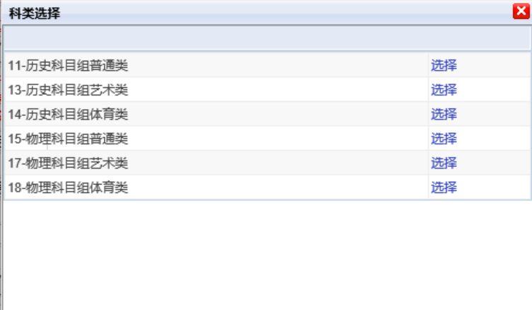 2、选择报考科类,请参照下图 2)选择报考科类。