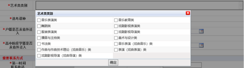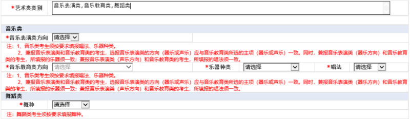若考生选择音乐表演类、音乐教育类、舞蹈类的艺术类类别,音乐类考生须按要求填报唱法、乐器种类;舞蹈类考生须按要求填报舞种。