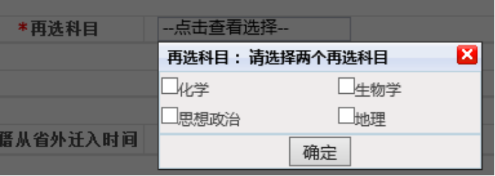 3、选择再选科目,请参照下图 3)选择再选科目。