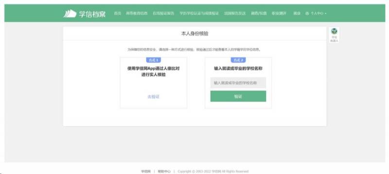4.登录成功后,若学生身份未核验,则需要按要求在“学信档案” 页面中进行身份核验后再次重新登录。