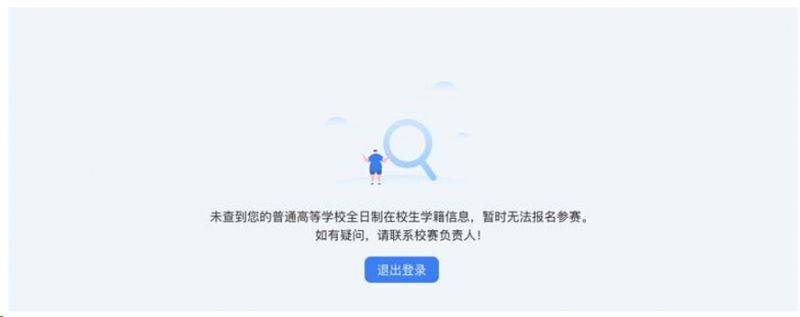 5.若出现“未查到您的普通高等学校全日制在校生学籍信息,暂 时无法报名参赛”的信息,可以联系校赛负责人进行咨询,确认是否 为全日制在校生、学信网账号是否有学籍信息等。