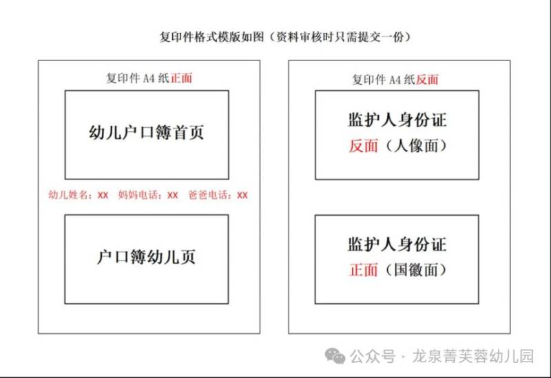 提交一名监护人的身份证和幼儿户口本复印件(户口簿首页、幼儿页)
