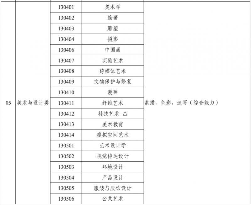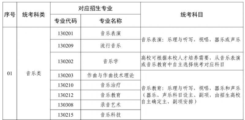 广东省2026年普通高校艺术类本科招生专业与省统考科类对应关系一览表
