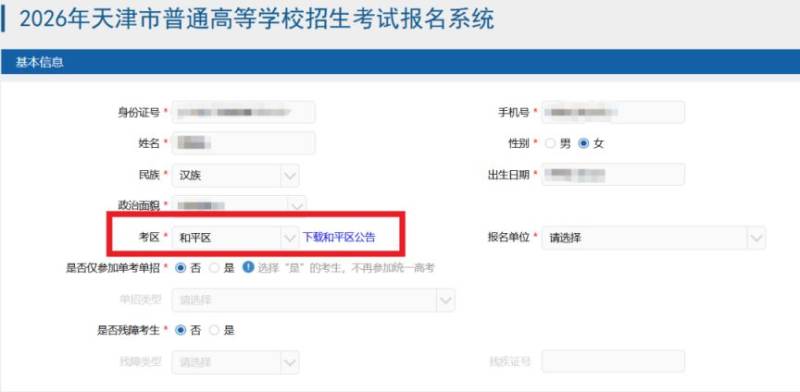 查询系统:2026年天津市普通高等学校招生考试报名系统