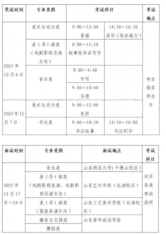 2026山东省普通高等学校招生艺术类专业统一考试公告