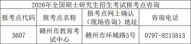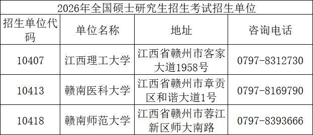 赣州市2026年全国硕士研究生招生考试报考点、招生单位咨询电话