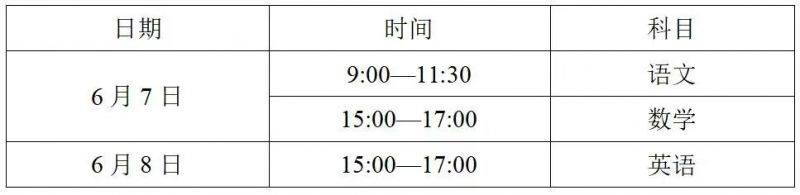 文化课实行全省统考,试题由省教育考试院依据现行职业高中教学大纲命制。考试时间安排如下: