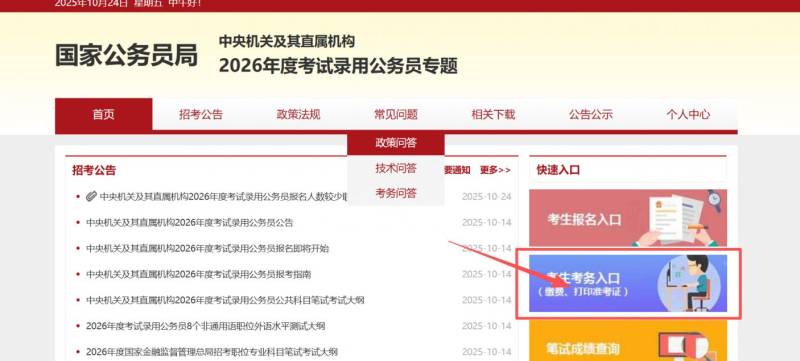 登录“中央机关及其直属机构2026年度考试录用公务员专题网站”(http://bm.scs.gov.cn/kl2026)主页面
