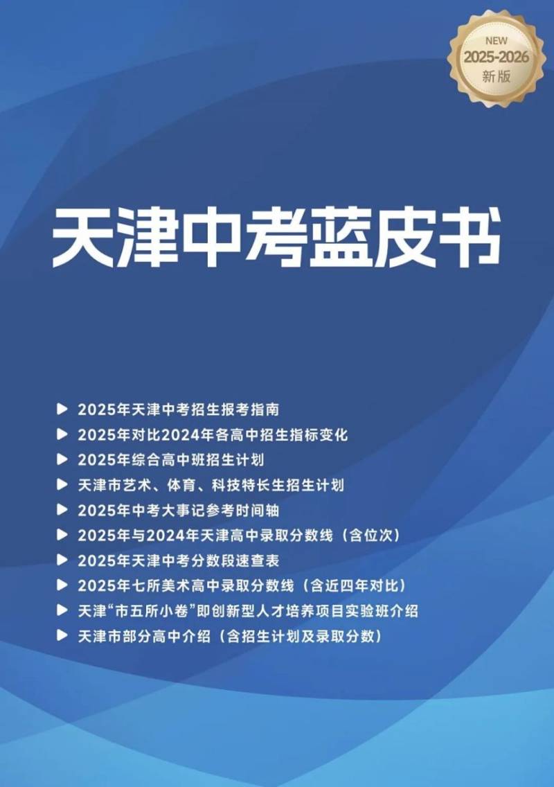 到场的家长可以免费领取一本《天津中考蓝皮书》。2025年天津市各高中学校招生章程,天津市高级中等学校志愿填报和招生录取问答,天津市指标生政策及获得条件,2024—2025年天津各高中学校招生计划、录取分数线等中考志愿填报信息,一册搞定!