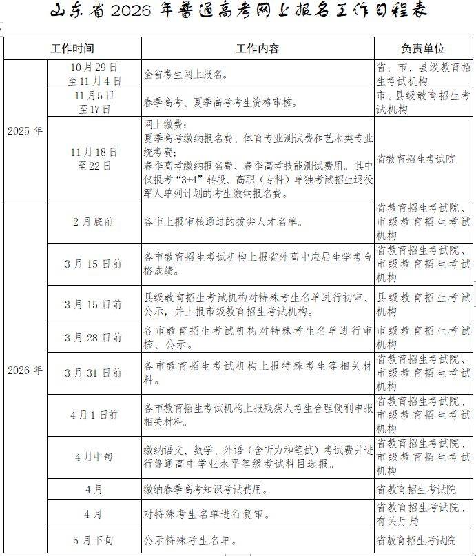 为做好山东省2026年普通高等学校(以下简称普通高校)招生考试报名工作,现就有关事项通知如下: