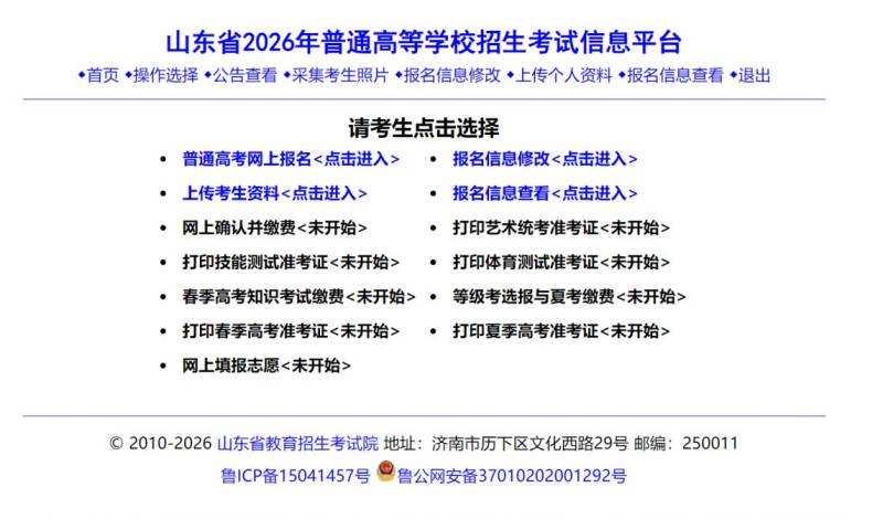 山东省2026年普通高等学校招生考试信息平台:点击进入