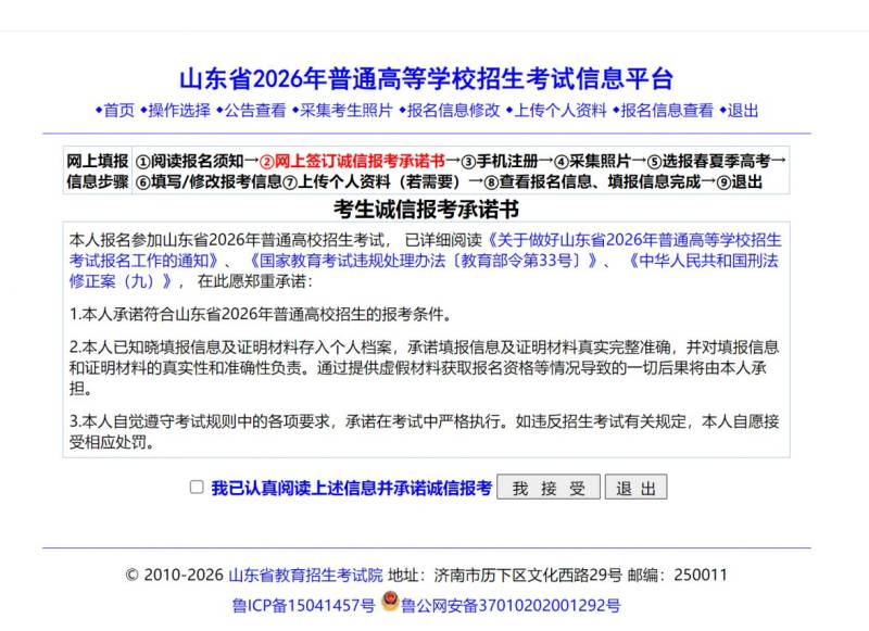 (1)考生登录报名系统后,选择报考春季高考、夏季高考或两者兼报,按各自的程序完成报名手续。考生需填报的个人信息项目见附件3。