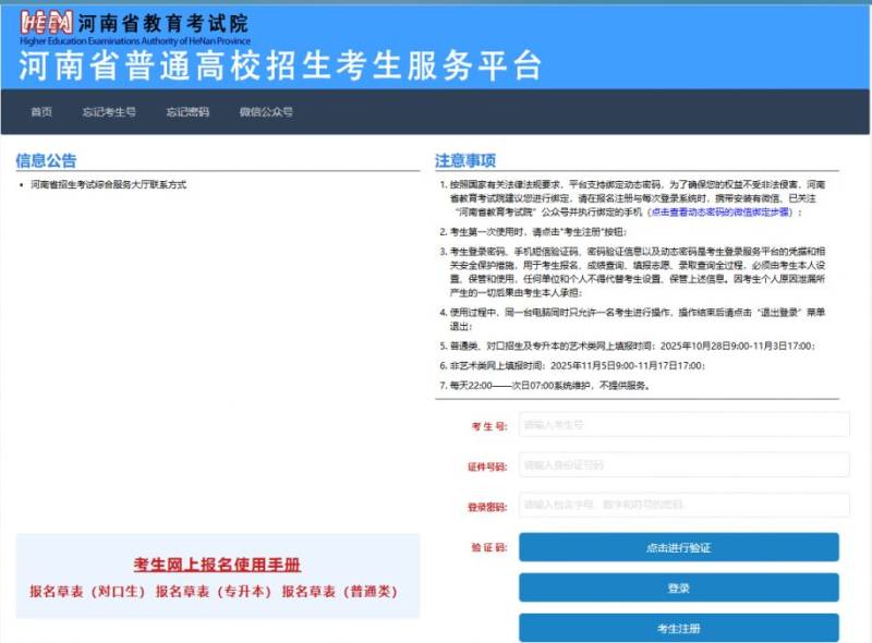 河南省普通高校招生考生服务平台:https://pzwb.haeea.cn