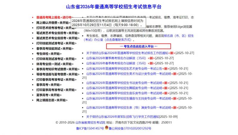 山东省2026年普通高等学校招生考试信息平台:https://wsbm.sdzk.cn