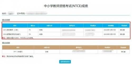成绩查询页面会同时显示笔试和面试两科成绩。如果只考了一门就显示一门的具体分数及合格与否。