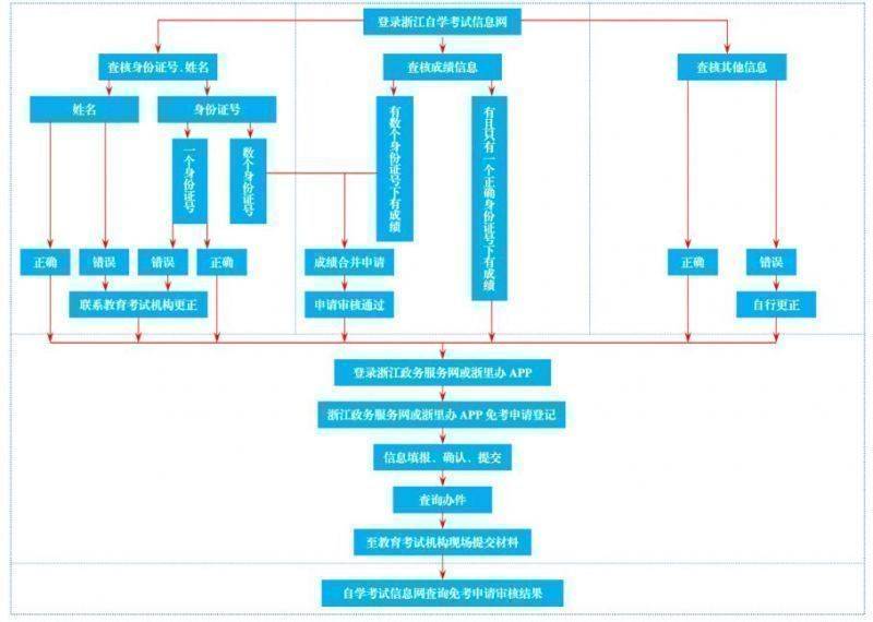 考生办理免考申请登记前,须登录浙江省教育考试院自学考试信息网(https://zk.zjzs.net)查询核对个人信息、课程成绩信息,有误的进行更正。