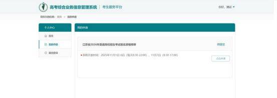 也可以从左侧菜单栏【我的申请】中,找到“江苏省 2026 年普通高校招生